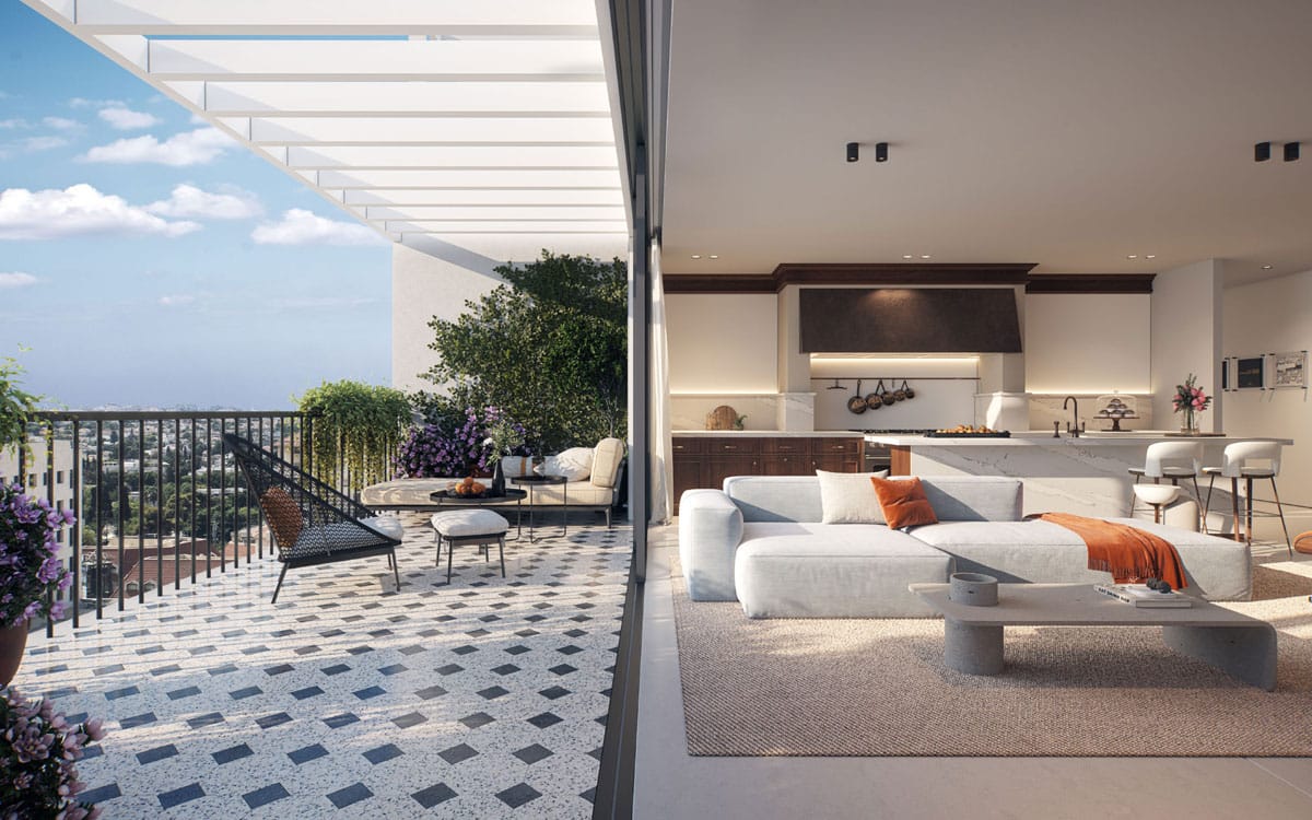 Villa-in-the-sky experience with expansive terraces and panoramic views.